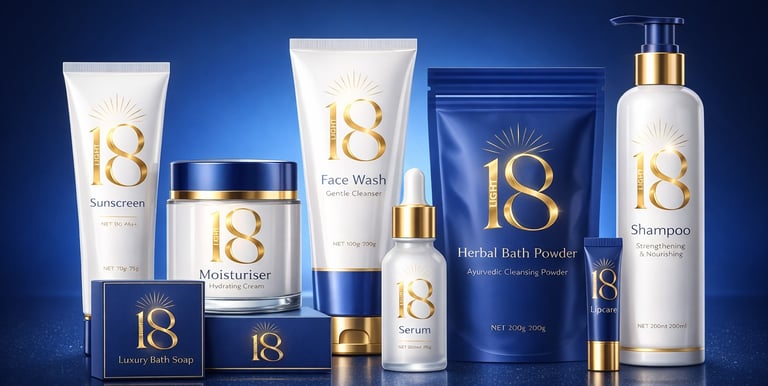 From face wash, moisturisers, serums, sunscreen, soaps, shampoos, lip care, and herbal bath powders, Light 18 brings you a complete range of natural skincare products in India, crafted with care and purpose.